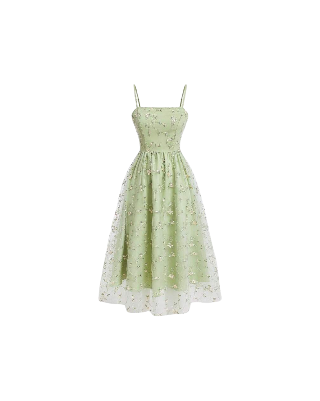 This Light Green Floral Midi Dress is crafted from soft net fabric with a delicate inner lining, making it perfect for brunch dates, garden parties, or any casual daytime outing. Its fresh pastel hue and floral embroidery give a breezy, feminine charm.
